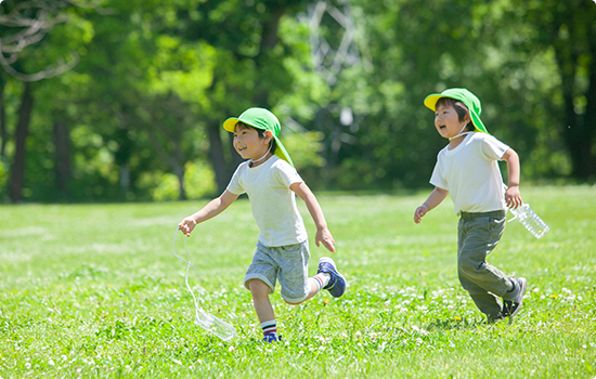 園内外でのびのびと楽しく体を動かし、粗大運動や微細運動に積極的に取り組みます。 -