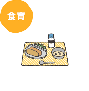生きていく上で基本となる「食」への興味・関心を持ち、楽しく食事ができるようにします。 -